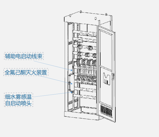 海天消防配电柜超细干粉灭火装置主要由装置本体、热敏线、安装支架等部件组成,可选配温度反馈启动元件,实现自启动+辅助启动复合启动控制模式。