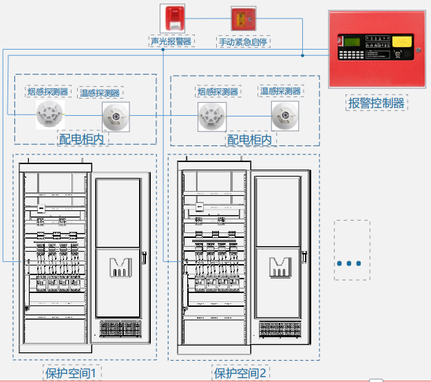 可通过火灾报警控制器,实现多套灭火装置的远程联动控制。
