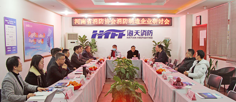 随后,一行人来到二楼会议室。首先观看了海天消防公司的宣传视频。随后总经理张新权介绍了公司成立20多年来发展的历程以及取得的成绩。大家对海天消防的发展及取得成绩给予了肯定,并期望海天消防能够百尺竿头更进一步,在未来取得更好的成绩。