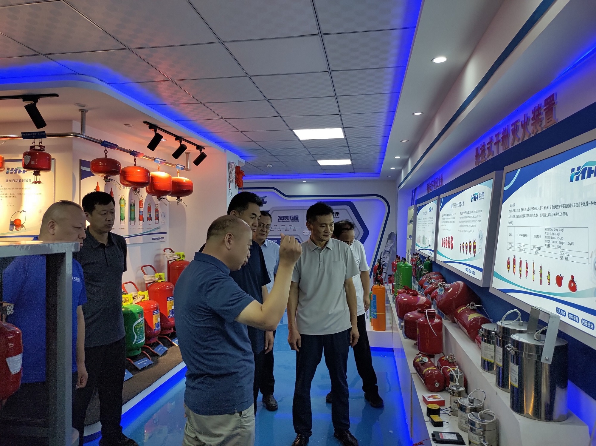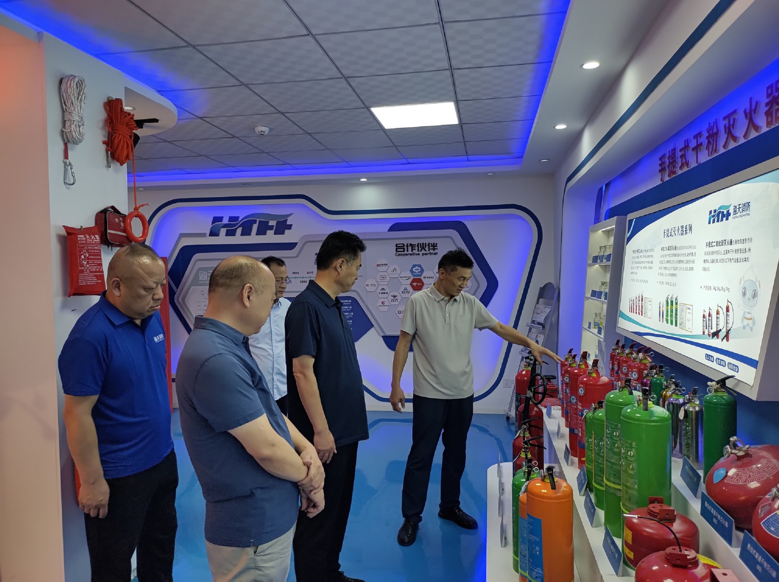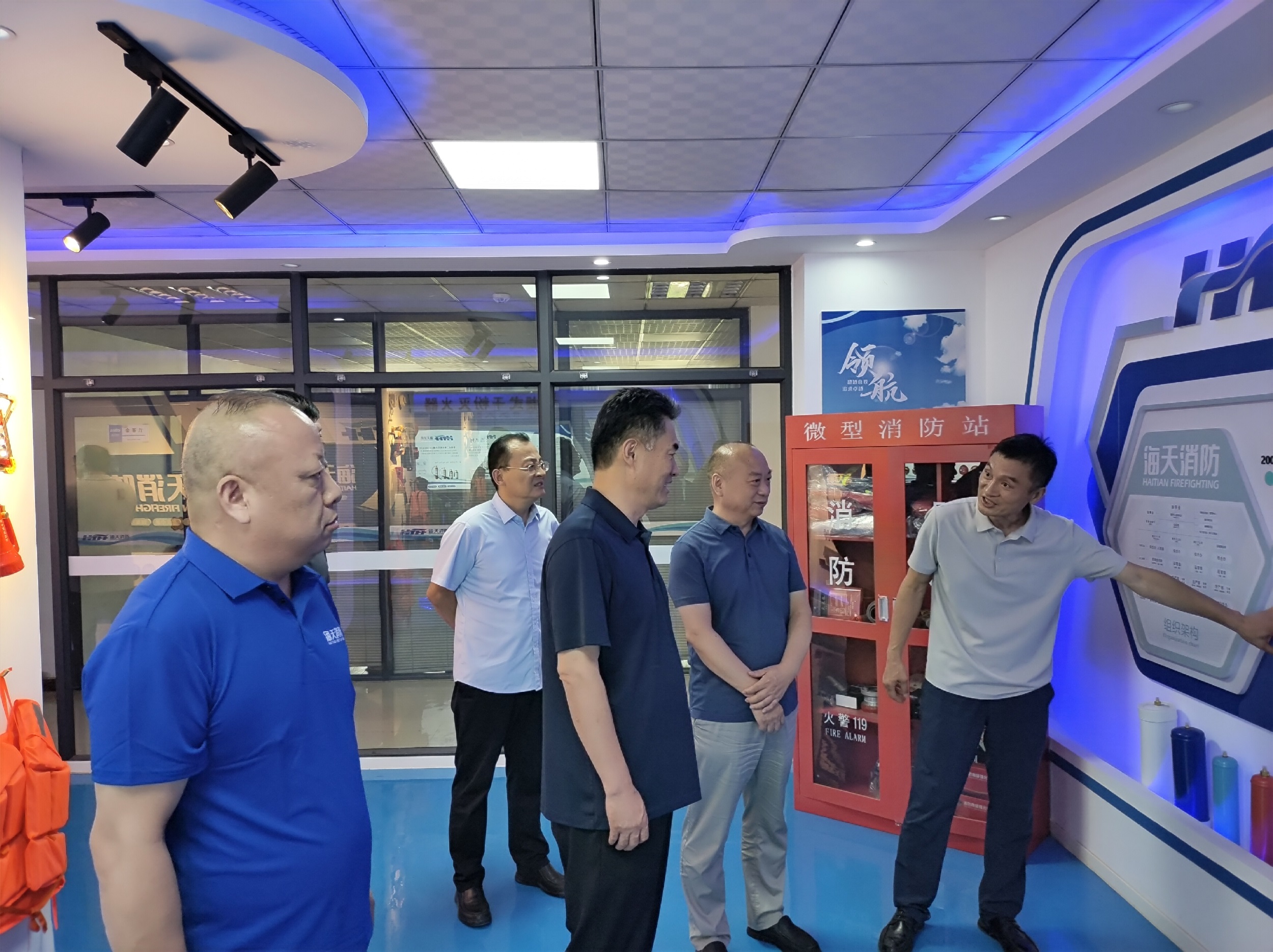 2025年6月22日,清丰县市委领导一行莅临海天消防考察调研,实地了解企业核心业务、产业规划,并就“科技创新”“安全生产”“产业升级”作出指导,海天消防董事长李世忠、总经理张新权、研发中心总监杨卫峰进行了热情接待。