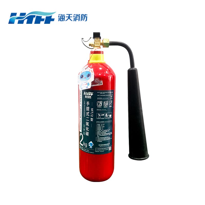 二氧化碳灭火器:适用于带电设备和易燃液体火灾,不会留下残留物,适合对设备或电器造成的火灾。
