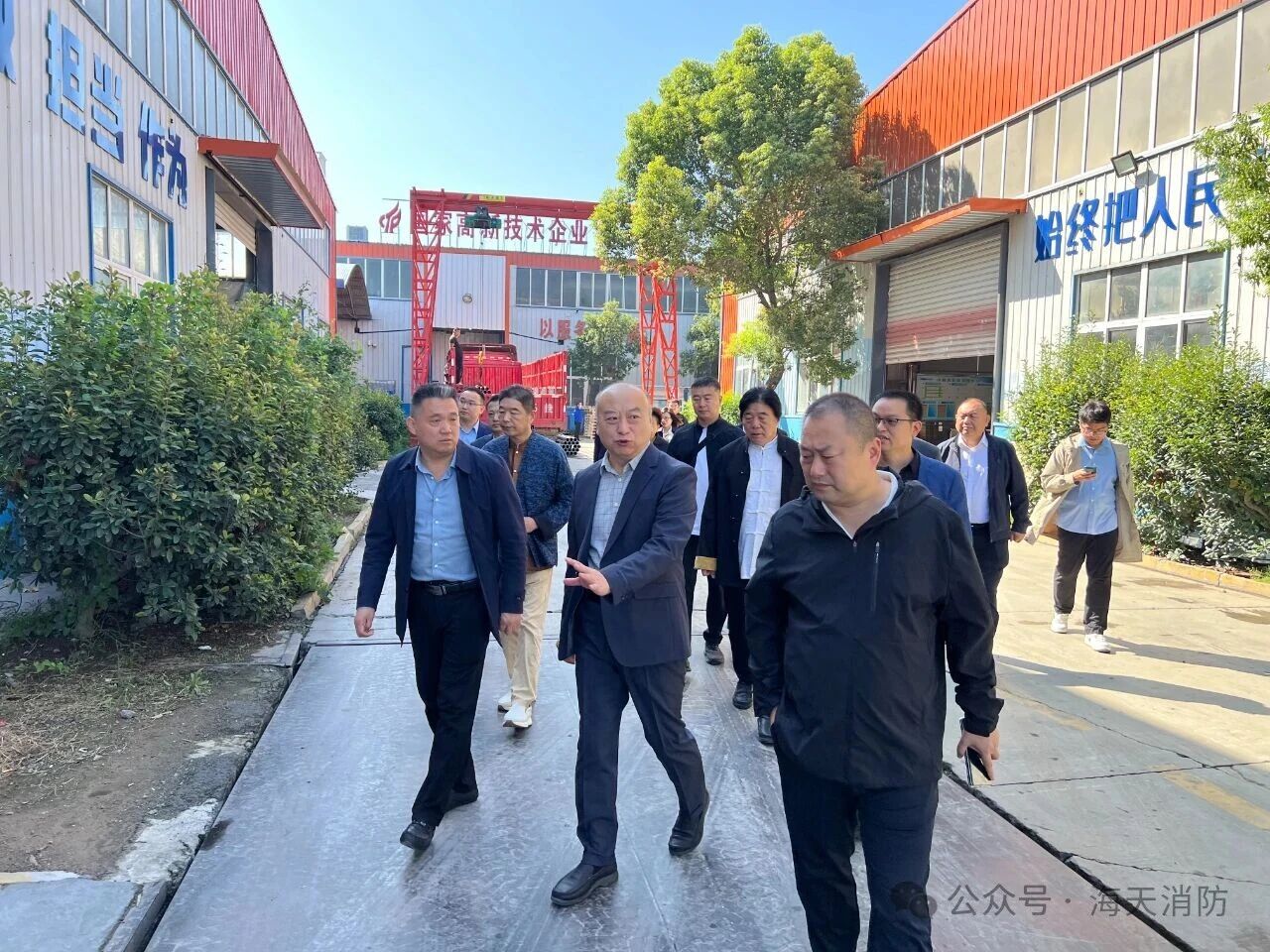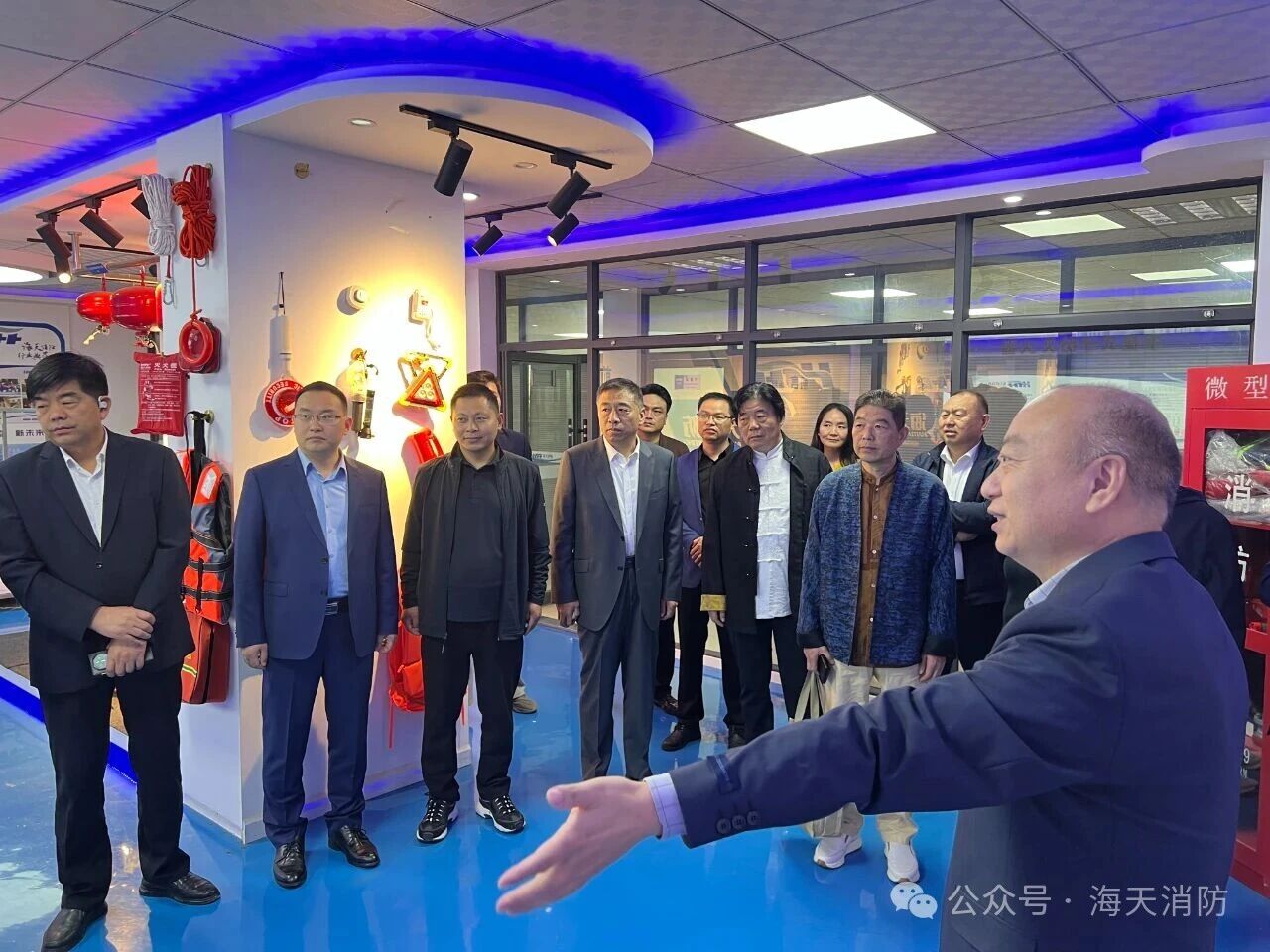 在董事长李世忠的亲自陪同下,考察团首先走进海天消防产品展示厅。展示厅内,各类消防应急产品陈列有序,从智能消防报警系统、高性能灭火设备到应急救援装备,每一款产品均配备详细的技术参数与应用场景说明。讲解人员结合实际案例,向考察团介绍了产品的研发理念、核心技术优势及市场应用成果,考察团成员不时驻足询问,对海天消防在产品创新与品质把控上的严谨态度给予高度认可。