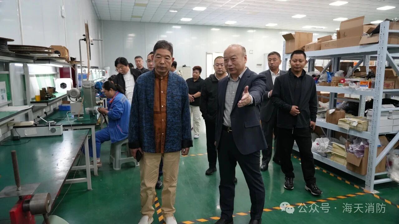 随后,考察团深入海天消防生产车间进行实地调研,近距离观察产品生产全流程。期间,董事长李世忠结合车间生产情况,进一步介绍了公司的发展历程、产能规模、技术研发团队及未来战略规划。他强调:“海天消防始终以‘守护生命安全’为核心使命,坚持技术创新与品质升级双轮驱动,致力于为社会提供更可靠、更高效的消防解决方案。”