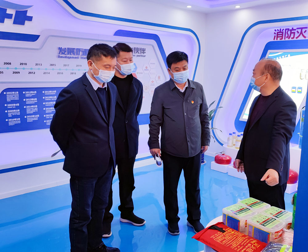 随后一行人参观了一楼产品展厅,董事长李世忠把公司核心竞争力的产品逐一介绍,副部长李继峰对我司产品高度认可,对电动客车锂离子动力电池箱火灾抑制装置、客舱细水雾灭火装置、汽车发动机舱灭火装置表示关注。研发中心总监杨卫峰为大家介绍了生产流程和产品特点等。