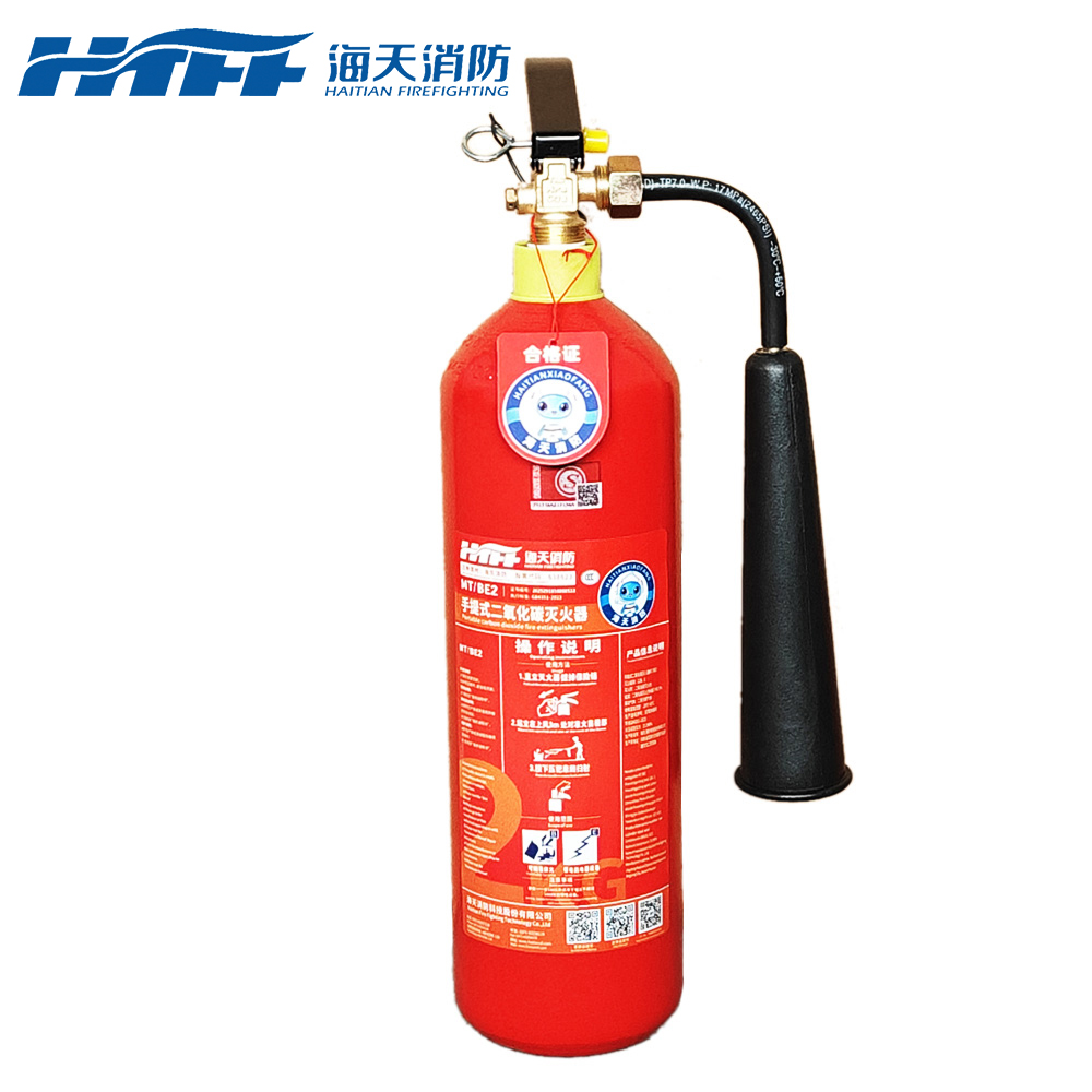 2.二氧化碳灭火器:二氧化碳灭火器利用压缩的二氧化碳气体进行灭火,不导电且不会对设备造成损害。它适用于扑灭电器设备、精密仪器等火灾。使用时,应确保通风良好,避免二氧化碳浓度过高导致窒息。