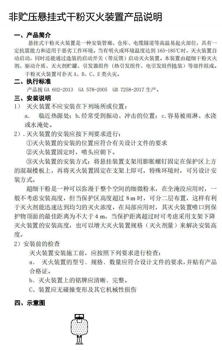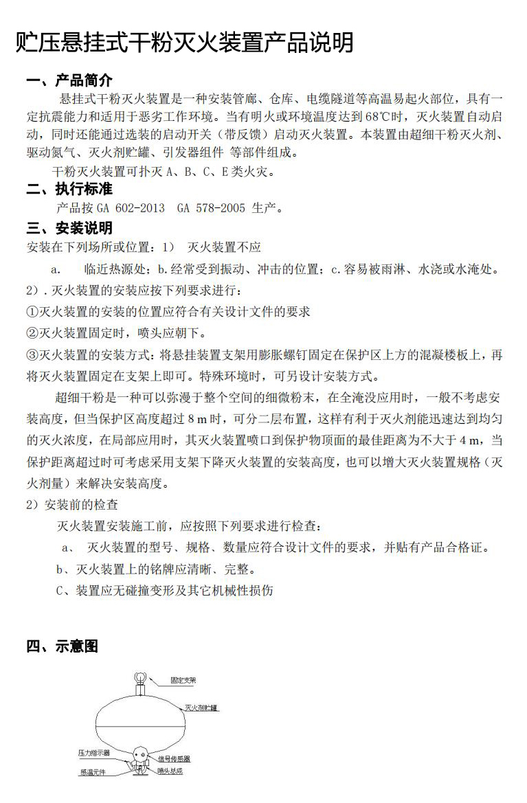 贮压普通干粉悬挂灭火装置(4KG、6KG、8KG)
