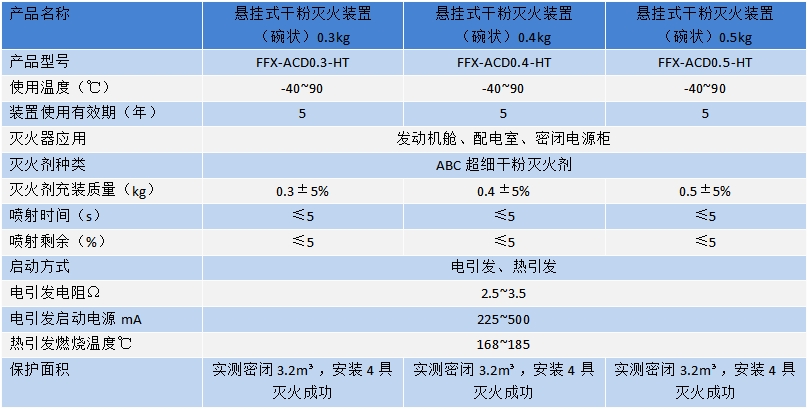 悬挂式超细干粉灭火装置(碗状)技术参数