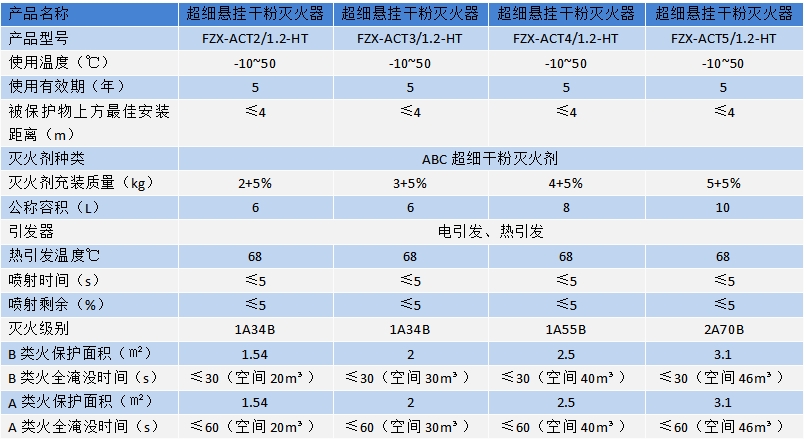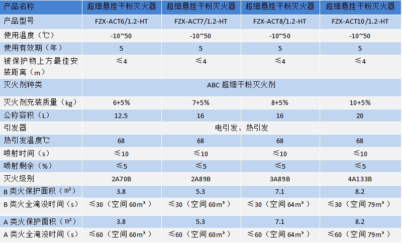 超细悬挂干粉灭火装置技术参数