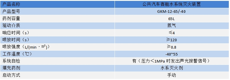 公共汽车客舱细水雾灭火装置参数
