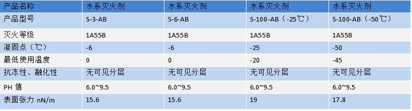 水系灭火剂技术参数