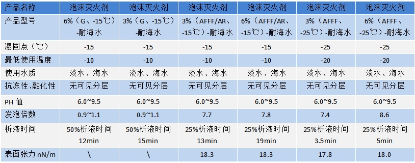 泡沫灭火剂技术参数