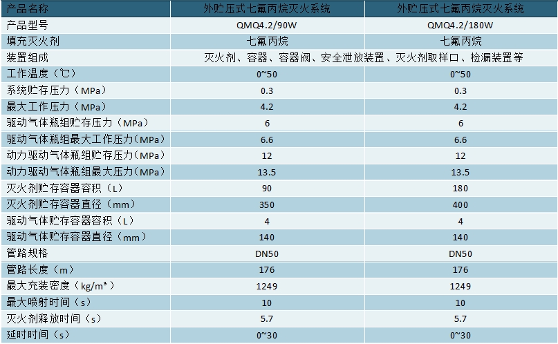 外贮压式七氟丙烷灭火装置技术参数