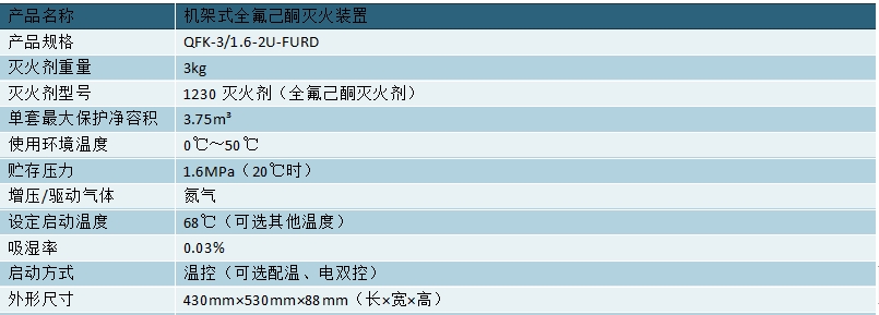 ◎安全可靠:装置贮存压力 1.6MPa,工作压力远小于机房常规气体灭火系统。装置针对柜内喷放灭火,不会对机柜周边设施造成影响,灭火剂用量针对柜内容积计算配置,即使释放到所在房间内,其浓度也非常小,不会对房间内人员或设施造成不良影响。