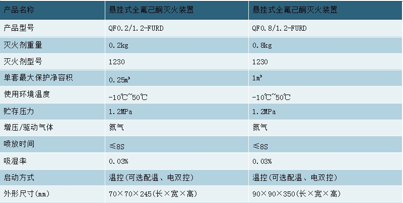 气溶胶灭火装置参数