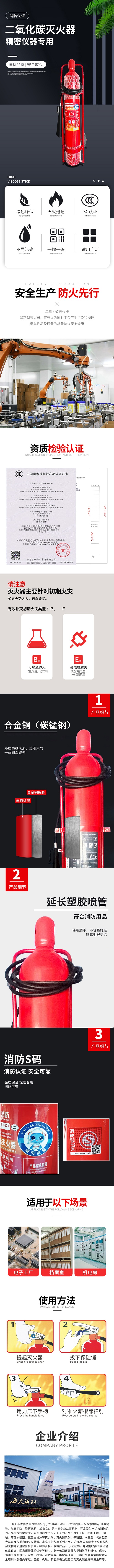我司生产的二氧化碳灭火器是通过喷射出低温二氧化碳,进而降低温度和隔绝氧气,达到快速灭火的目的。