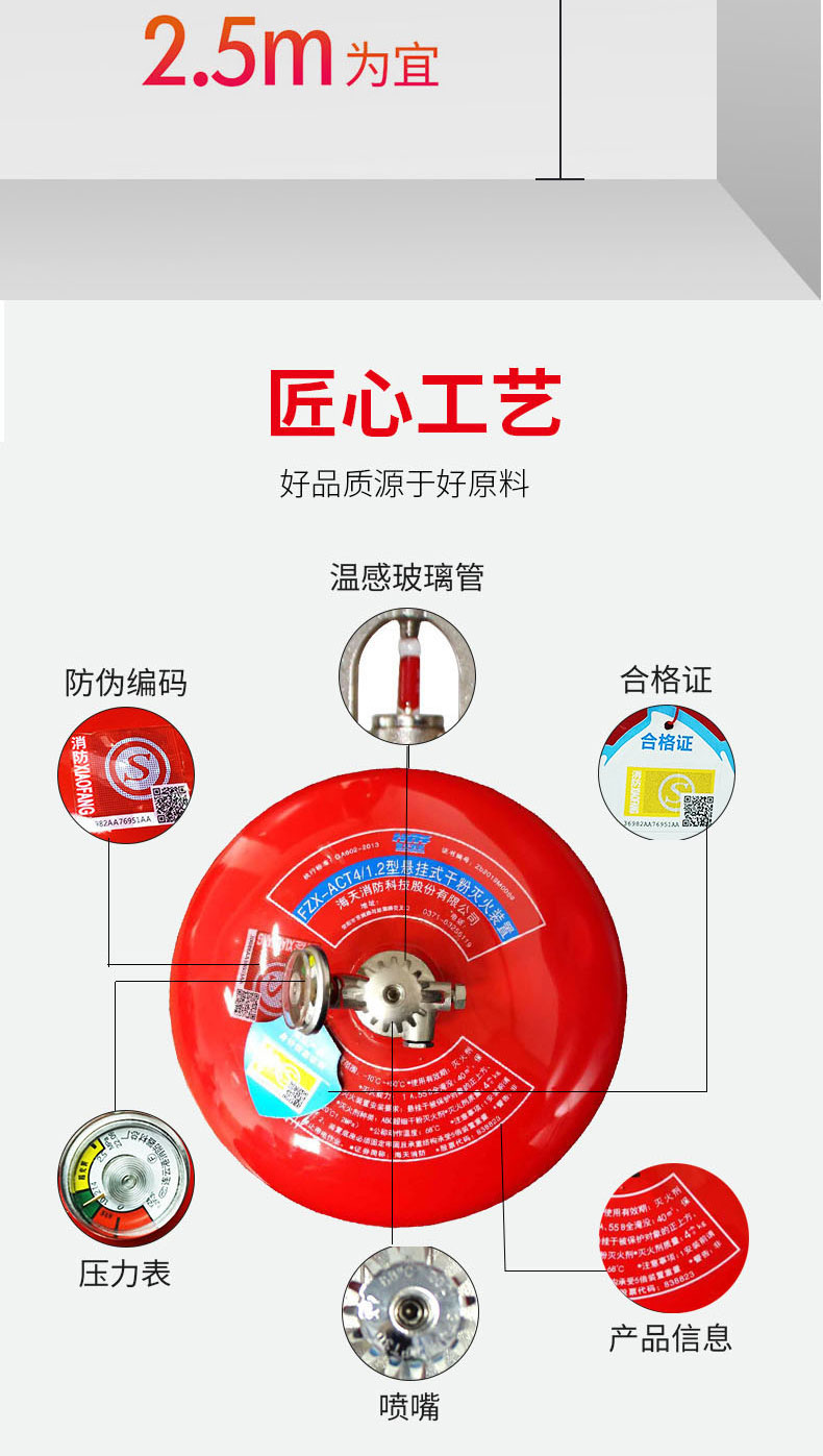 一般安装在管廊、仓库、电缆隧道等高温易起火部位,具有一定抗震能力和适用于恶劣工作环境。当有明火或环境温度达到68℃时,灭火装置自动启动,快速扑灭初期火灾。