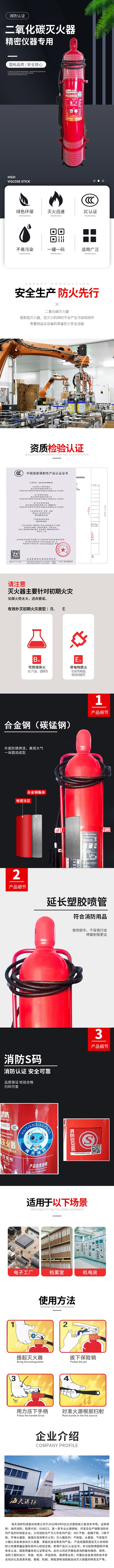 我司生产的二氧化碳灭火器是通过喷射出低温二氧化碳,进而降低温度和隔绝氧气,达到快速灭火的目的。